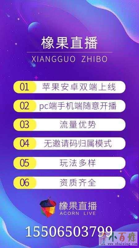 橡果直播为直播很好地诠释了“品牌实力,用心缔造”,为了更好地推动直播市场发展,进一步完善市场布局,橡果互娱直播为合作企业提供一系列的支持:团队支持、技术支持、培训支持、运营支持等,为合作企业提供全方位落地式辅导方案。创新推出“网红+pk+全民娱乐”的直播新模式,让用户的参与感会更强,而且是随时随地即可参与!来自www.xbaixing.com