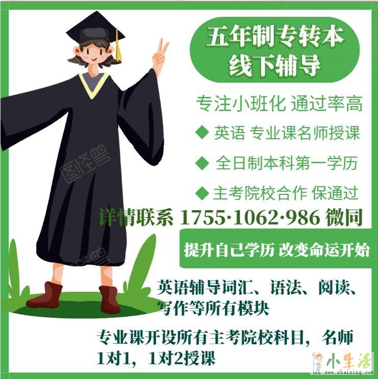 五年制专转本辅导班来江苏瀚宣博大专转本学校,专业的五年制专转本教学,辅导英语和主考院校全部专业课,常年招生,滚动开班,随到随学,以帮助学员考取本科为目标,以提升学员应试能力为宗旨,保新二本冲老二本,系统分科系统分科目详细讲解各个部分的内容,通过老师的课堂教学,进一步加深各科的内容,起到提纲挚领的作用,在整个教学过程中,将往年考试内容贯穿其中,让学生掌握了基本考点,并在重点内容上进行强化,帮助学生取得高分,考入理想院校,详情联系瀚宣博大宋老师1755(微)1062(信)986同步,联系老师免费预约试听课并领取招生简章小+生+活+网。