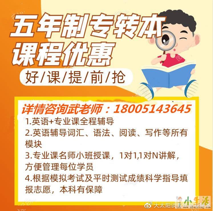 五年制专转本英语是重中之重可英语的学习是一个日积月累的过程,如果没有好的学习技巧学起来是有些困难的,英语在五年制专转本本中是统考科目,有zui低分数线的限制,而对于高职生们是有难度的,他们英语基础本来就薄弱,再加上有些高职院校三四年级就停掉了英语课,这对高职生是非常不利的。综合来看,报个辅导班是正确的选择!