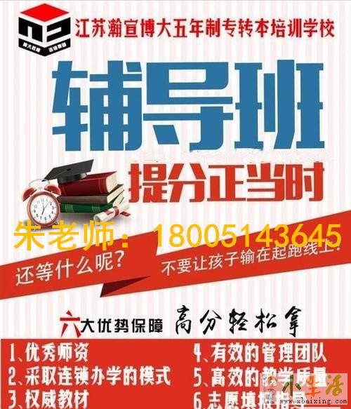 江苏瀚宣博大专转本是一家专门从事五年制专转本教育,已经有14年的培训经验,拥有一流的师资力量,不仅提供学员更丰富的学习资源,高效的复习方法,英语辅导、专业课教学,还有专业的咨询、院校介绍、考纲提供、统一报名、志愿填报、集体送考等一系列流程化服务。更多五年制专转本详情及预约免费试听具体联系朱老师180(同)0514(威)3645(信)唯心:fky186小_生_活_网。