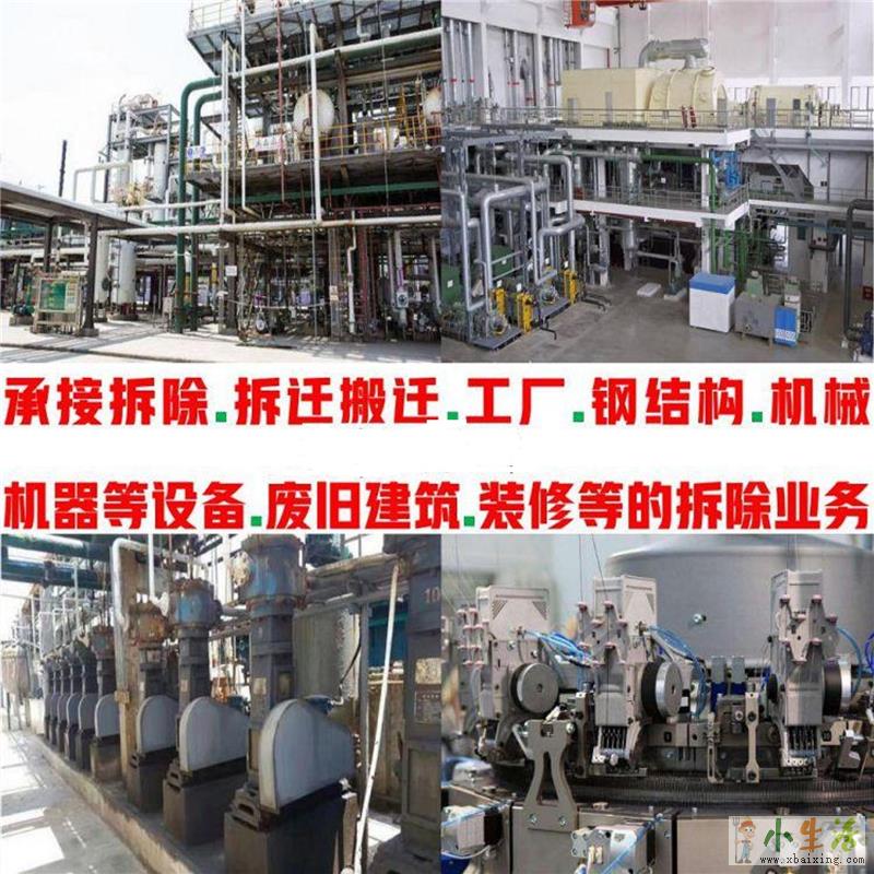 我公司有的拆除队伍,及各种施工用的机器设备,吊装设备,车辆等。我公司从事各种钢结构拆除,建筑拆除,机械设备拆除,化工厂拆除,工业厂房拆除,工业管道拆除,电气线路拆除,施工设施的拆除,废旧材料物资回收,销毁等业务。我公司有的起重队,负责设备搬运,转场小_生_活_网。主要业务负责设备搬家,拆除。