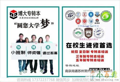 江苏五年制专转本可报考院校:南京晓庄、金陵科技、三江学院、苏州大学文正学院、苏州大学应用技术学院、淮阴工学院、盐城工学院、南京医科大学康达学院、南通大学、江苏第二师范学院、南京师范大学中北学院来源www.xbaixing.com。江苏瀚宣博大专转本培训学校各城市各大校区暑假班开班时间定于7月10日,结束时间八月中下旬左右,暑期集训班为期三十到四十天左右,暑假的重要性不言而喻。你的努力会给你惊喜,一分耕耘一分收获,方向有了,平台也必不可少,平台是你的辅助,平台对了你将 事半功倍!南京博大五年制专转本专业做五年一贯制专转本教育培训13年,在江苏省内南京、南通、苏州、常州、无锡、镇江等地均设有分校。