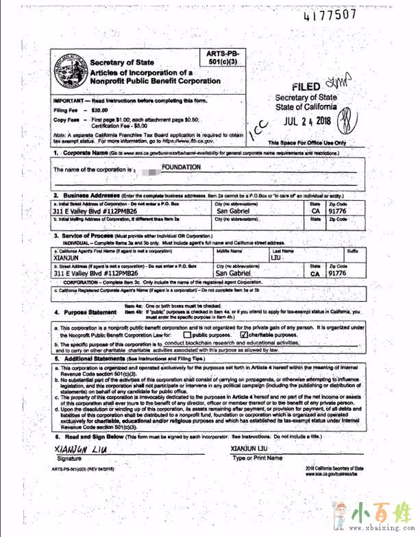 在美国注册的非盈利性基金会可以享受税务豁免,这是很大的一个优势小.百.姓.网。而且注册也是很简单的,只需要提供: