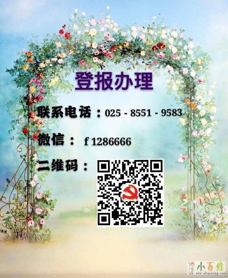 在线办理登报 今天办理,明天见报.登报声明,让您足不出户,就可登报,节约您宝贵时间.欢迎来电咨询电话025-85519583微信f1286666