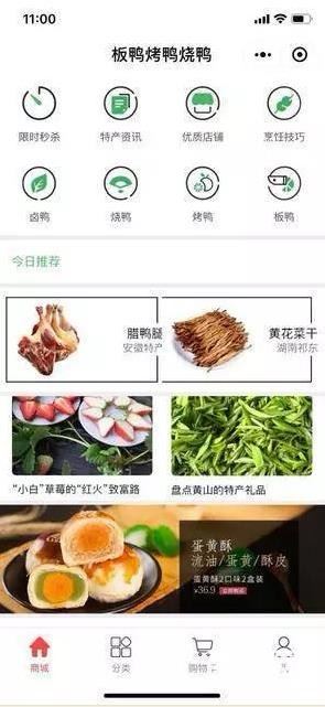 板鸭烤鸭烧鸭微信小程序是一款专业的线上土特产交易平台,所有土特产均为店家直销,价格实惠,口味好极了。不仅如此,平台每天更新特产美食相关资讯供您阅读。现在下单,还享超值优惠。更多惊喜请访问微信小...