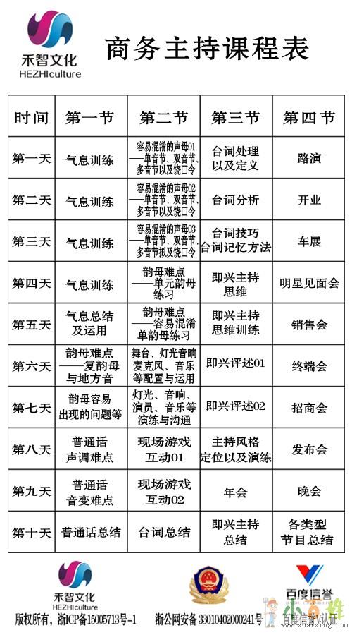 课程内容:气息发音,普通话,调整台词方法,即兴主持(逻辑思维构架,线上