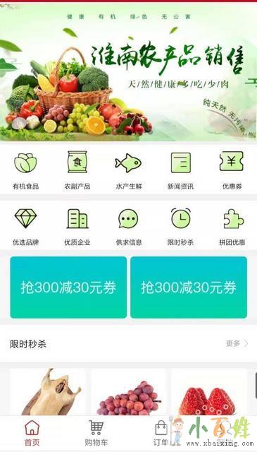 淮南农产品销售微信小程序正式上线啦!微信搜索淮南农产品销售,不用app,不用进网站,更多美味可口的农产品触手可及,让您吃到新鲜的西红柿,萝卜等等!顾客的满意就是我们的服务宗旨!小程序会不定期推出产品的拼团等优惠活动,每天更有关于农产品的精彩资讯供您阅读,您不能错过哦xbaixing.com