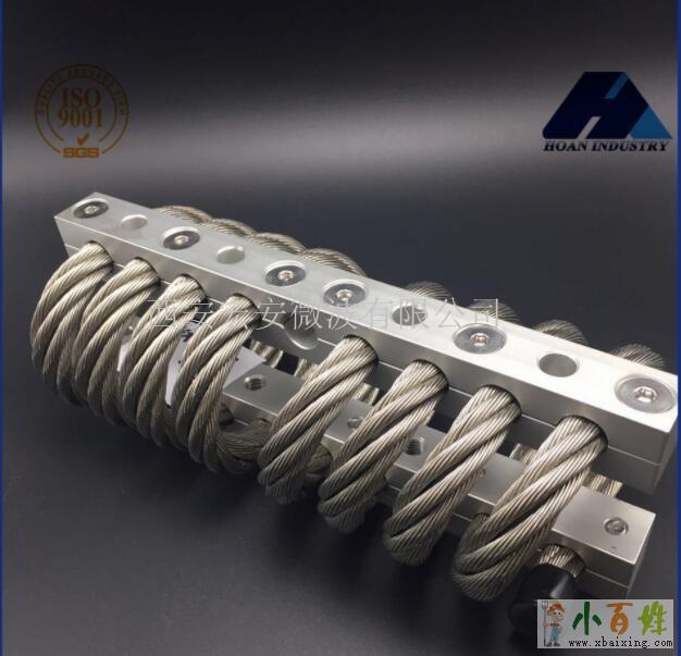 2、结构:钢丝绳隔振器是由钢丝绳绕成螺旋状并固定在沿螺母布置的两块金属板之间制作而成的,它的刚度与阻尼取决于钢丝绳的直径、股数、圈数及缠绕方式和尺寸.它是一种具有非线性特性和干摩擦阻尼的新型隔振器,采用多股钢丝按一定方向缠绕而成的钢丝绳作为弹性元件,具有明显的迟滞特性,其能量耗散来源于钢丝间的摩擦、挤压、滑移。