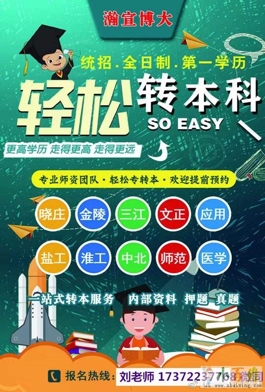 江苏瀚宣博大凭借精确的内部辅导教材、丰富的转本培训经验、高通过率屹立于江苏省转本培训界。江苏瀚宣博大教育培训学院开办英语和专业课周末班、寒暑假集训营、考前辅导班、签约协议班(保三本冲二本,协议有保障)等不同班次,采用半封闭式管理,全天式复习,上下课严格打卡、理论与实际相结合的教学模式进行针对性教学小 百 姓 网。报班有人督促学习,有氛围,有指导,有解决疑难问题的途径。虽然过程也需要自觉和管理自己,但是这样的难度过程,比自己学习管理自己难度降低很多;最重要的是,有氛围和有老师带着学习;报班有专业咨询、院校介绍、志愿填报、专业课教学、统一报名、集体送考等一系列流程化服务,让考生备考的方向性更强,更多五年制专转本详情及预约免费试听联系刘老师一七③七二②三七⑦六八,微信同步,咨询校区:南京校区、徐州校区、苏州校区、常州校区、镇江校区、南通校区、无锡校区、昆山等校区来源www.xbaixing.com。
