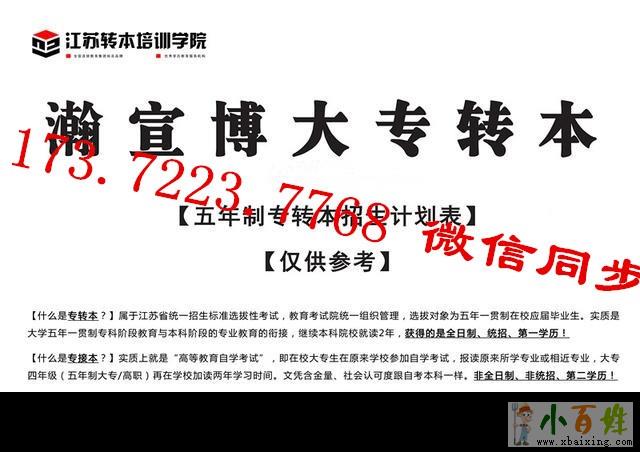 江苏瀚宣博大专转本——全江苏唯1一家专做五年一贯制专转本主考院校所有专业课、英语课实体培训的辅导机构,正在面向南京、无锡、江阴、宜兴、常州、扬州、苏州、连云港、淮安、 昆山、镇江、徐州、泰州、盐城、镇江、张家港、句容等江苏地区五年制高职院校招生,更多五年制专转本详情级预约免费试听请联系江苏瀚宣博大专转本总校刘老师一七③七二②三七⑦六八,微信同步,咨询校区:南京总校、徐州校区、镇江校区、南通校区、苏州校区、常州校区、无锡等校区www.xbaixing.com。