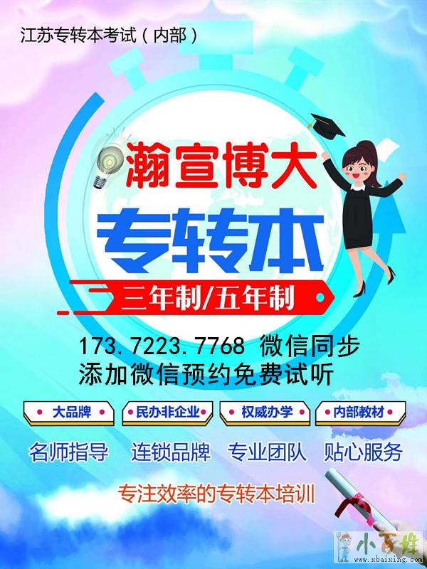 江苏瀚宣博大专转本为各学科配备一定的练习题,供学生们进行巩固练习,夯实基础和查漏补缺,更有老师量身定制教学安排和学习规划帮助学生消化不懂的考点并有志愿填报等方面的服务,务必保证学员考取本科,更为学员提供更丰富的学习资源,高效的复习方法,英语辅导、专业课教学,还有专业的咨询、院校介绍、考纲提供、统一报名、志愿填报、集体送考等一系列流程化服务,让考生学习更有方向性和针对性,更多五年制专转本详情级预约免费试听请联系江苏瀚宣博大专转本总校刘老师一七③七二②三七⑦六八,微信同步,咨询校区:南京总校、徐州校区、镇江校区、南通校区、苏州校区、常州校区、无锡等校区小_百_姓_网。