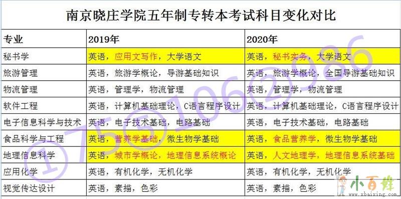 其他几个专业考试科目无变化,报考这3个专业的考生需要注意参考用书和复习进度,同时也可以联系江苏瀚宣博大专转本培训学校老师,咨询南京晓庄学院专业课辅导上课情况,在考前参加辅导班冲刺www.xbaixing.com小百姓网。