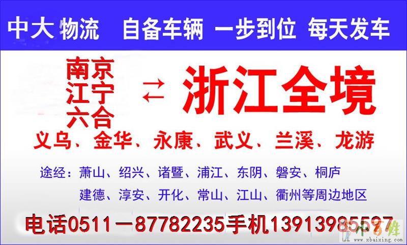 9、 浙江专线: 南京 -杭州、义乌、金华、衢州、绍兴、上虞、余姚、慈溪、宁波、台州、温岭、玉环、乐清、丽水、温州、瑞安专线物流公司中大物流推广
